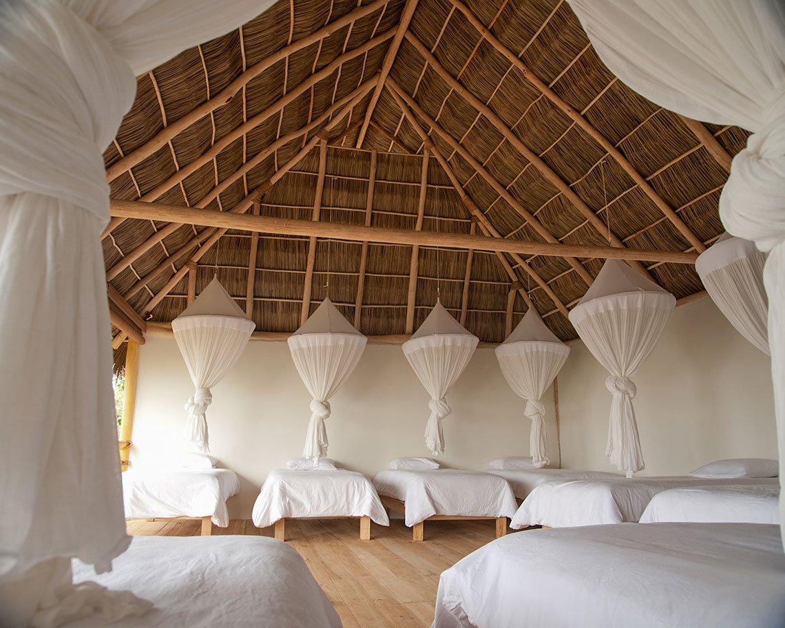 With much more space, this Female-Only dorm is nestled high up in the mountains and has wonderful ocean and jungle views. There are two beautiful bathrooms with open-air showers, every bed has a high quality mosquito net, night stands and drawer organizer under the bed. For nomads, yogis, and spiritual seekers this is the best option for budget-savvy travelers alike.