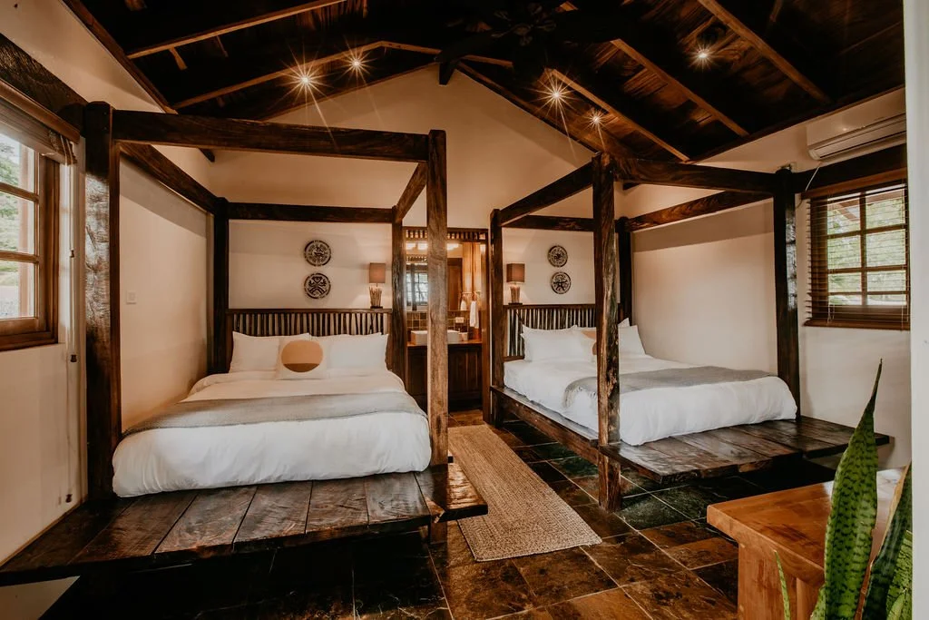 Imagine yourself in a space that embodies elegance, sophistication, style, comfort and culture all at once. Rio Chico Cabana is a ground level cabana at Sansara Surf & Yoga Resort that encompasses all this and more.